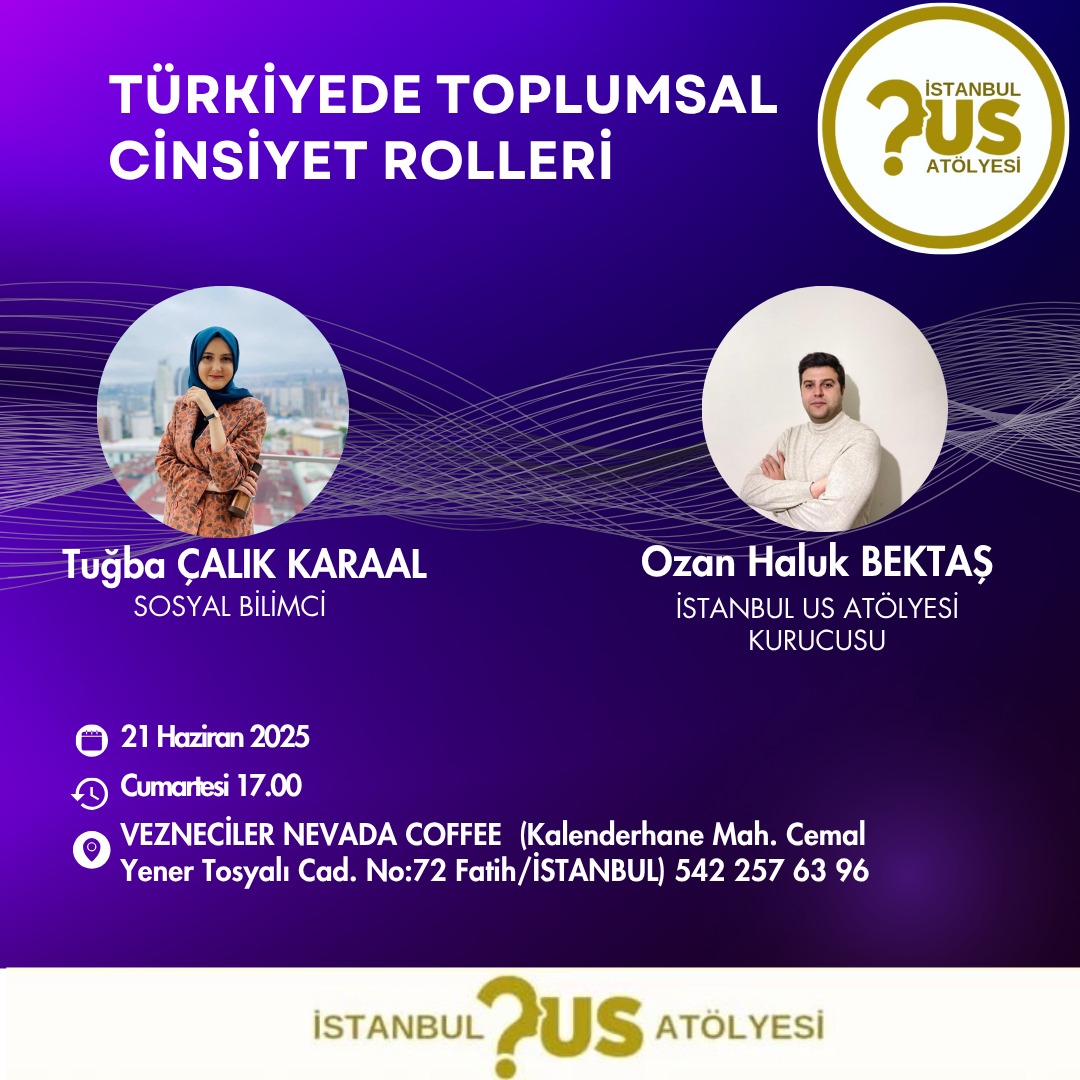 İstanbul Us Atölyesi, 21 Haziran 2025 Cumartesi günü, toplumsal yapımızın en tartışmalı ve derin meselelerinden biri olan “Türkiye’de Toplumsal Cinsiyet Rolleri” başlıklı bir söyleşiye ev sahipliği yaptı.