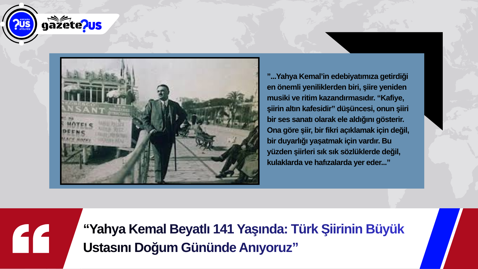 GazeteUs olarak Yahya Kemal Beyatlı’yı doğum gününde saygıyla anıyor; dizelerinin taşıdığı ritmin ve derin bilincin, kültür dünyamıza ilham vermeye devam ettiğini bir kez daha hatırlatıyoruz.